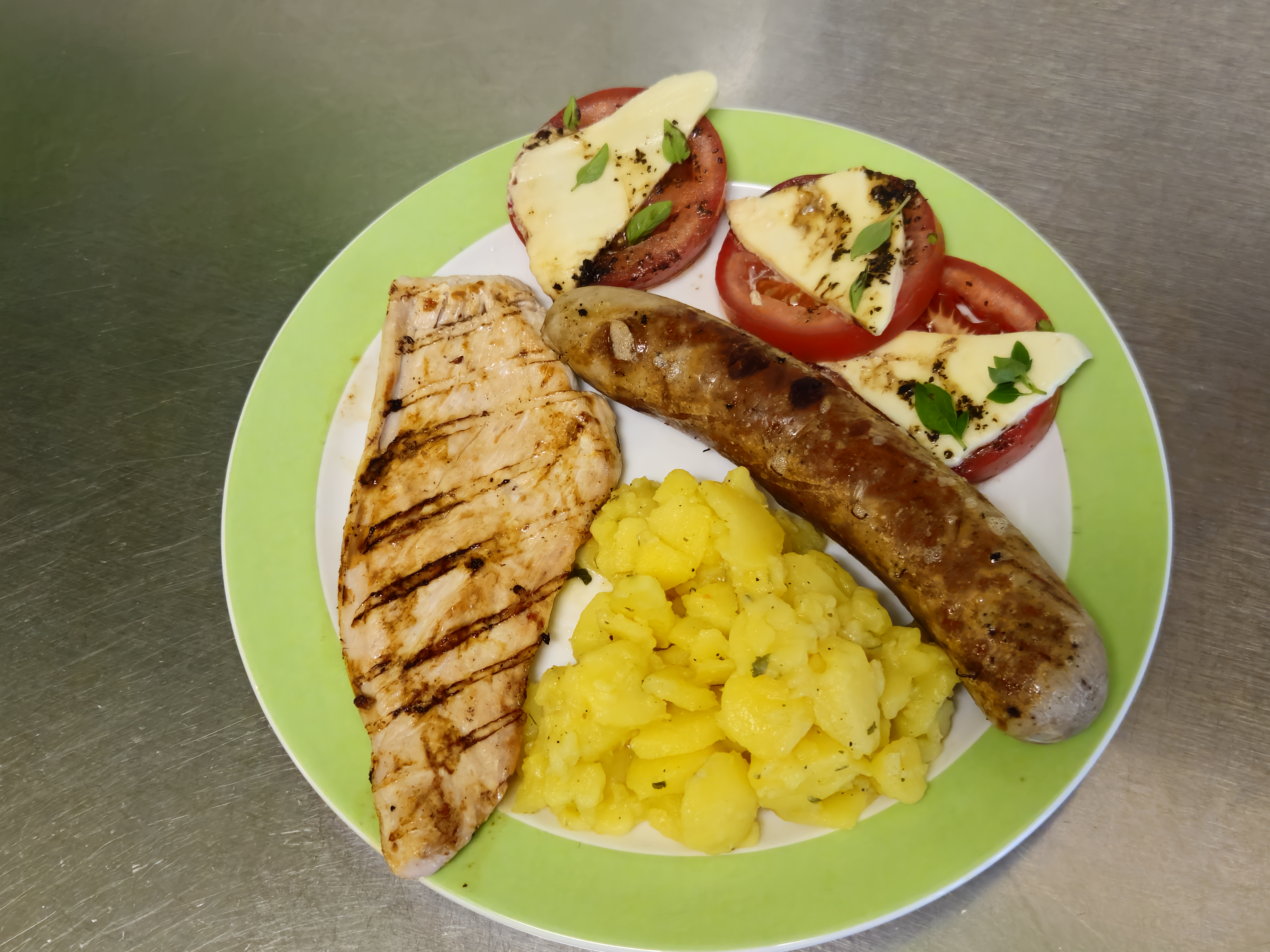 Zum Essen gab es neben Fleisch, Grillwürsten und Grillkäse, auch selbstgemachten Kartoffelsalat und Tomaten-Mozzarella. So kam Jede*r auf sein*ihre Kosten.