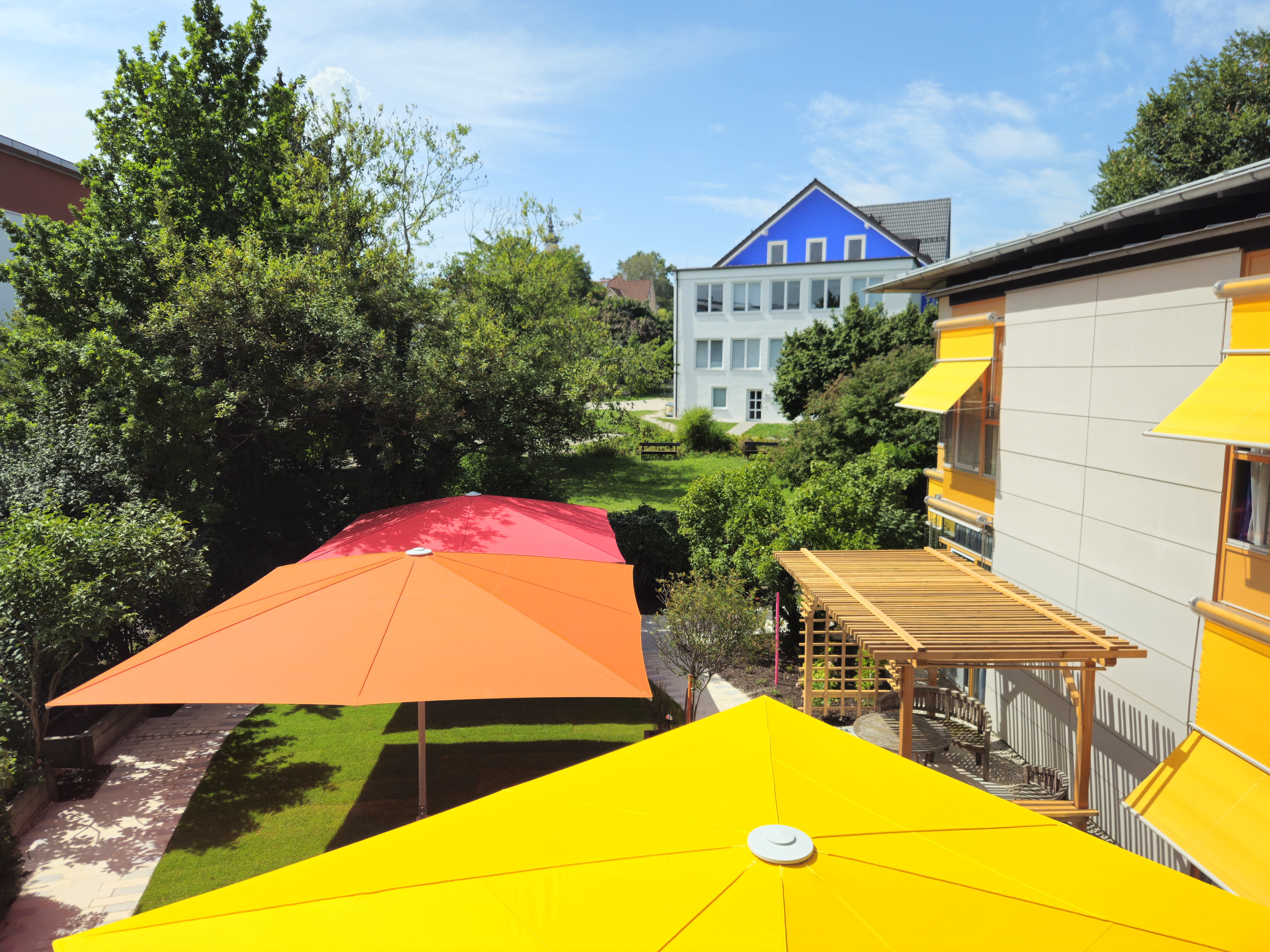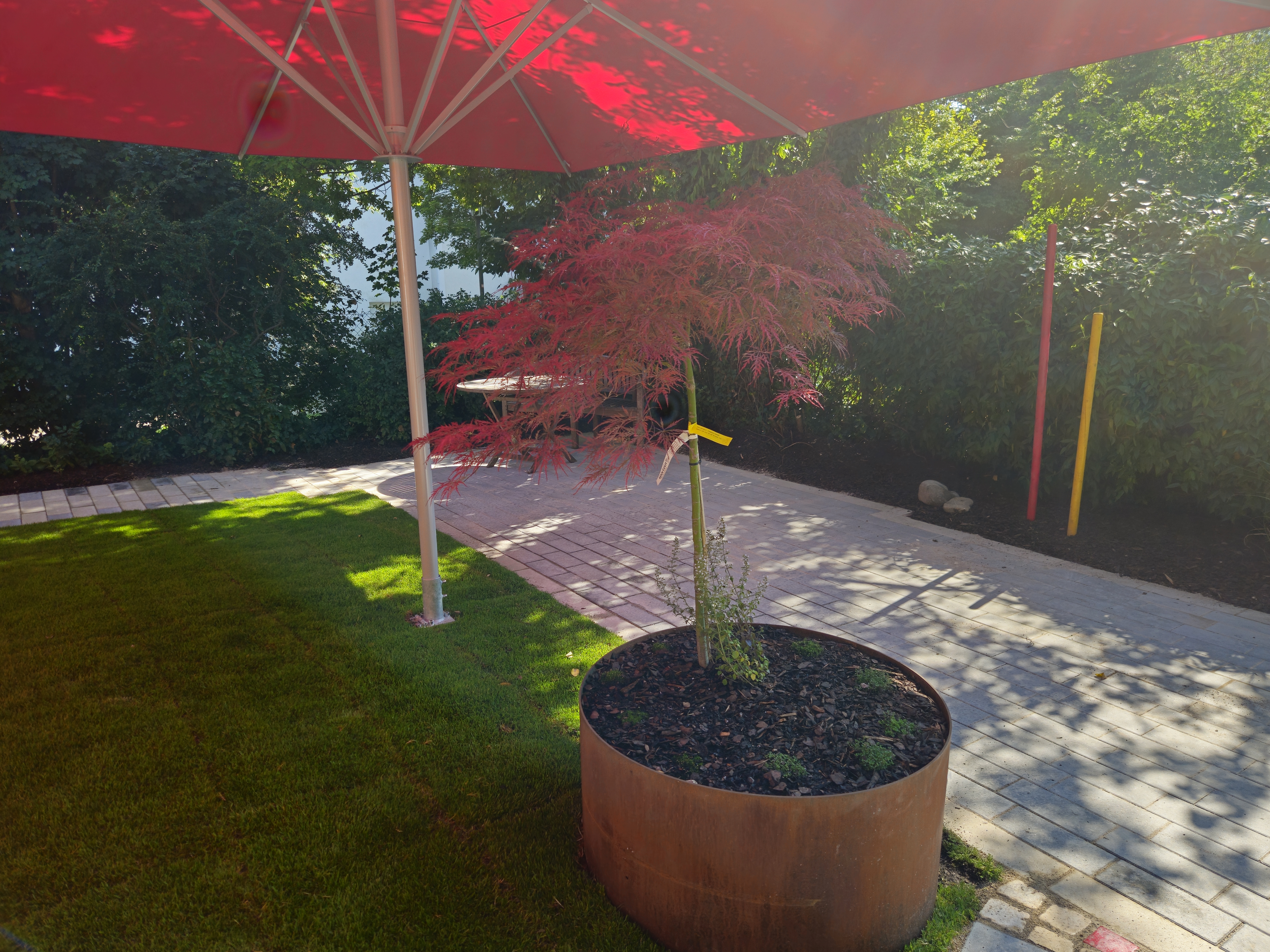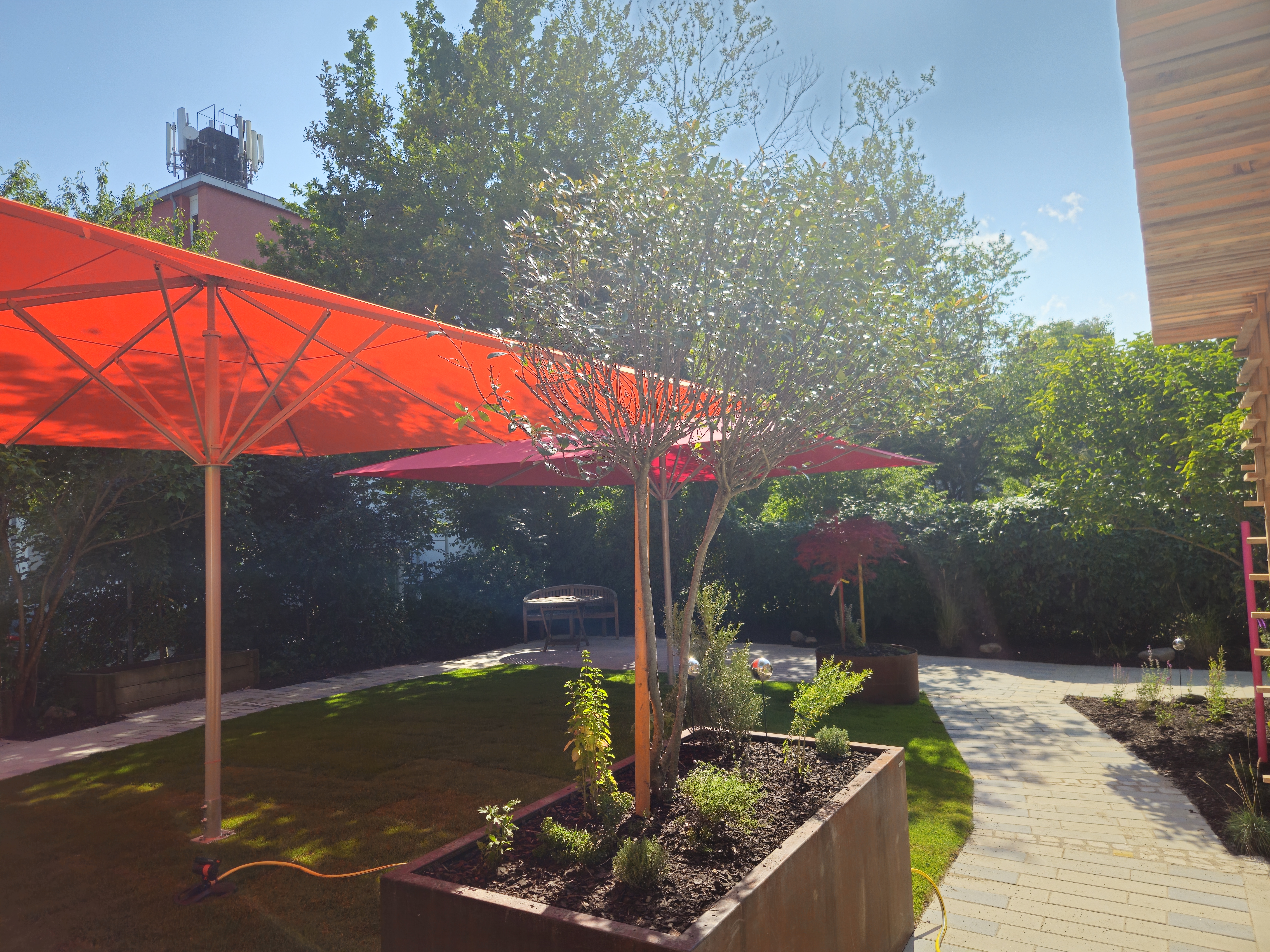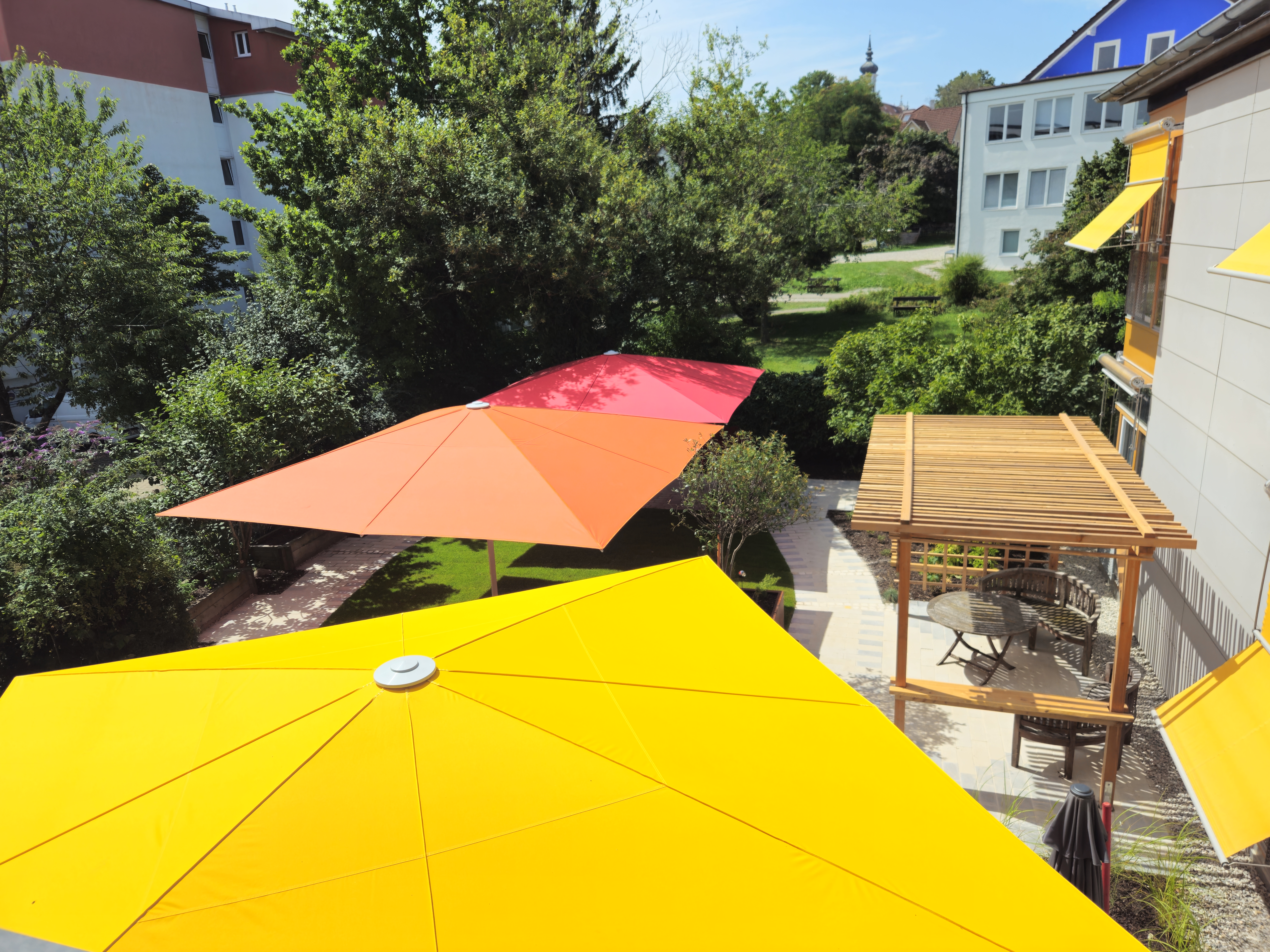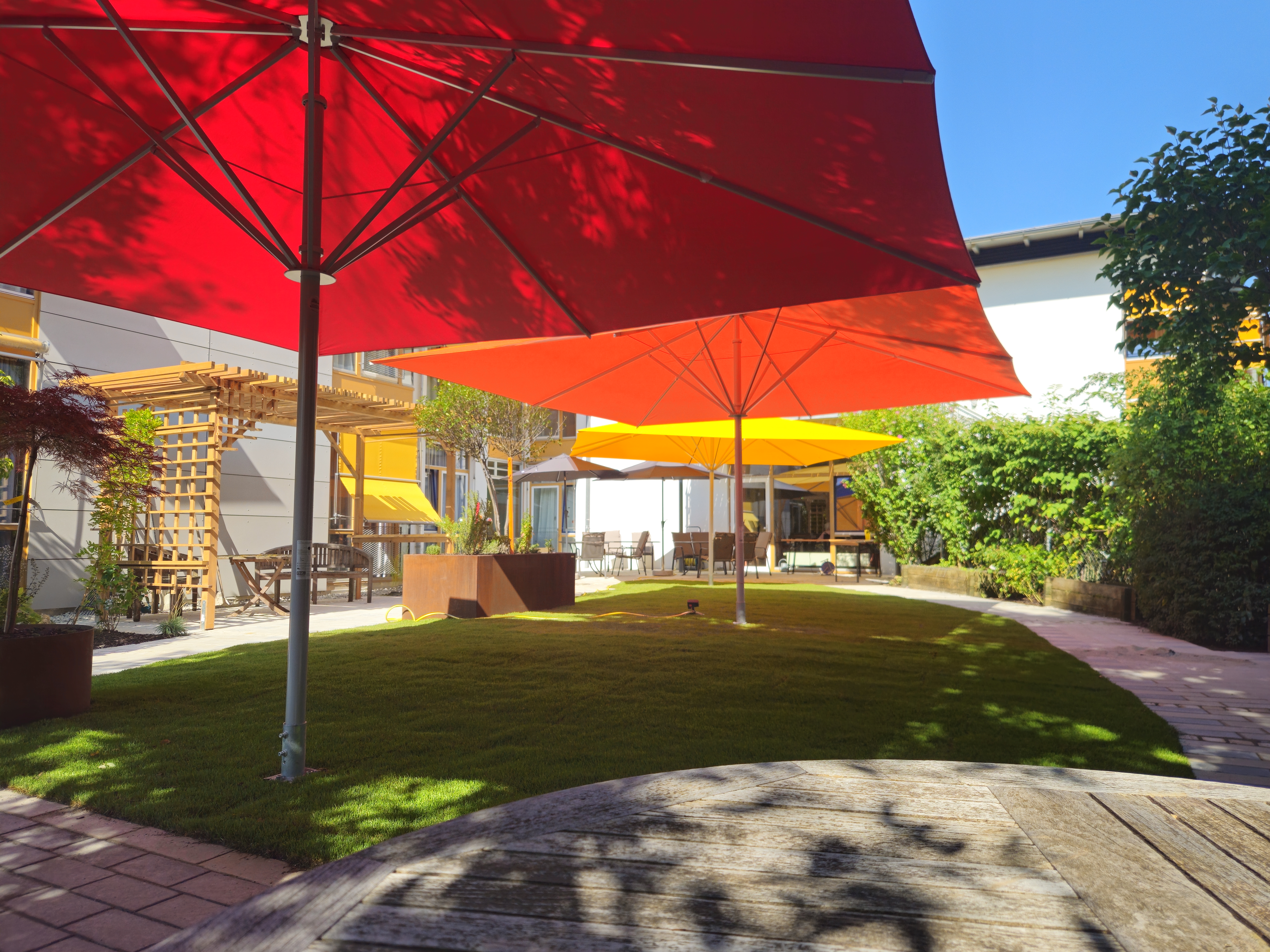Bei abends immer noch sehr sommerlichen Temperaturen haben wir es uns unter den neuen Sonnenschirmen gemütlich gemacht.