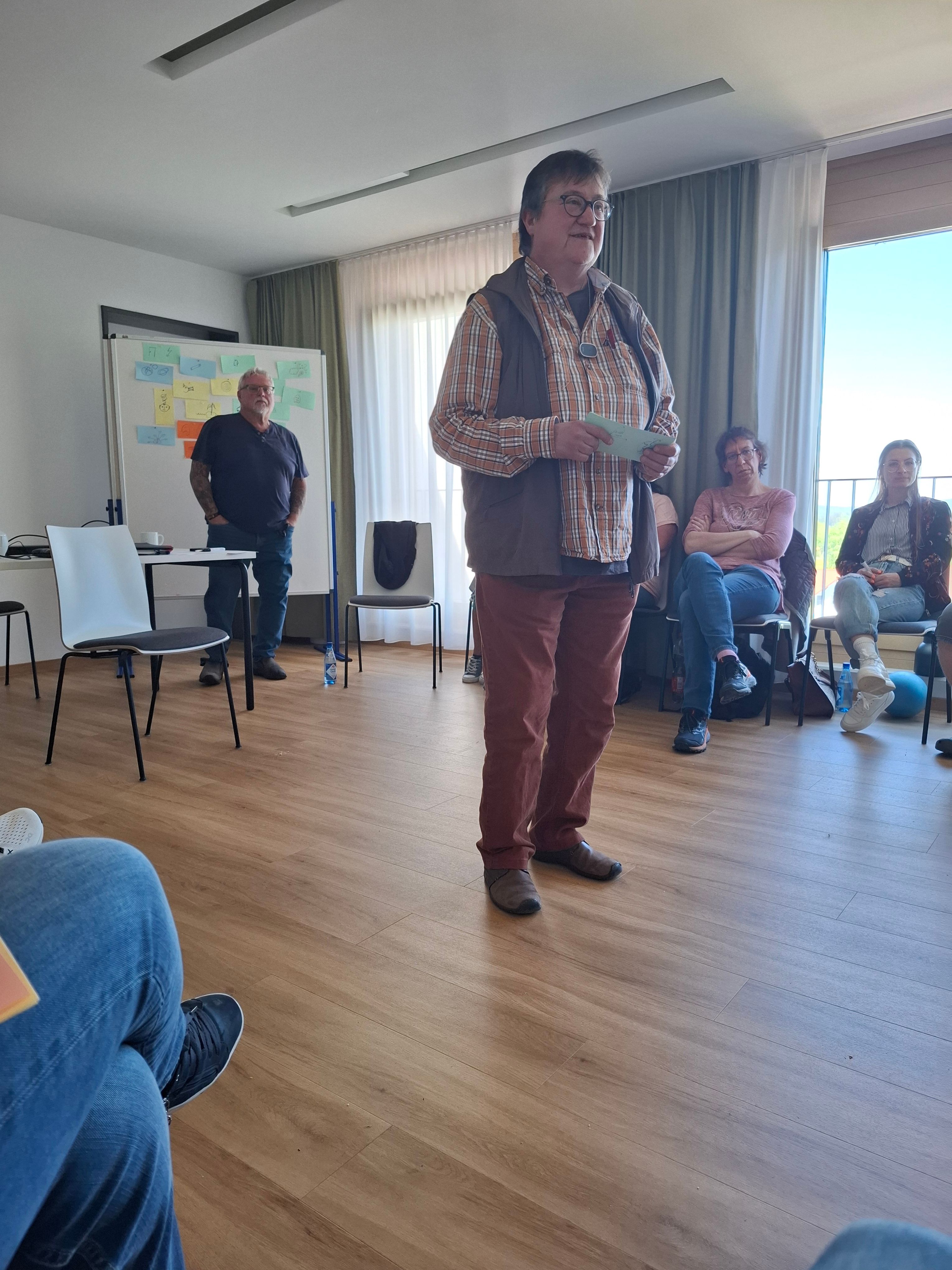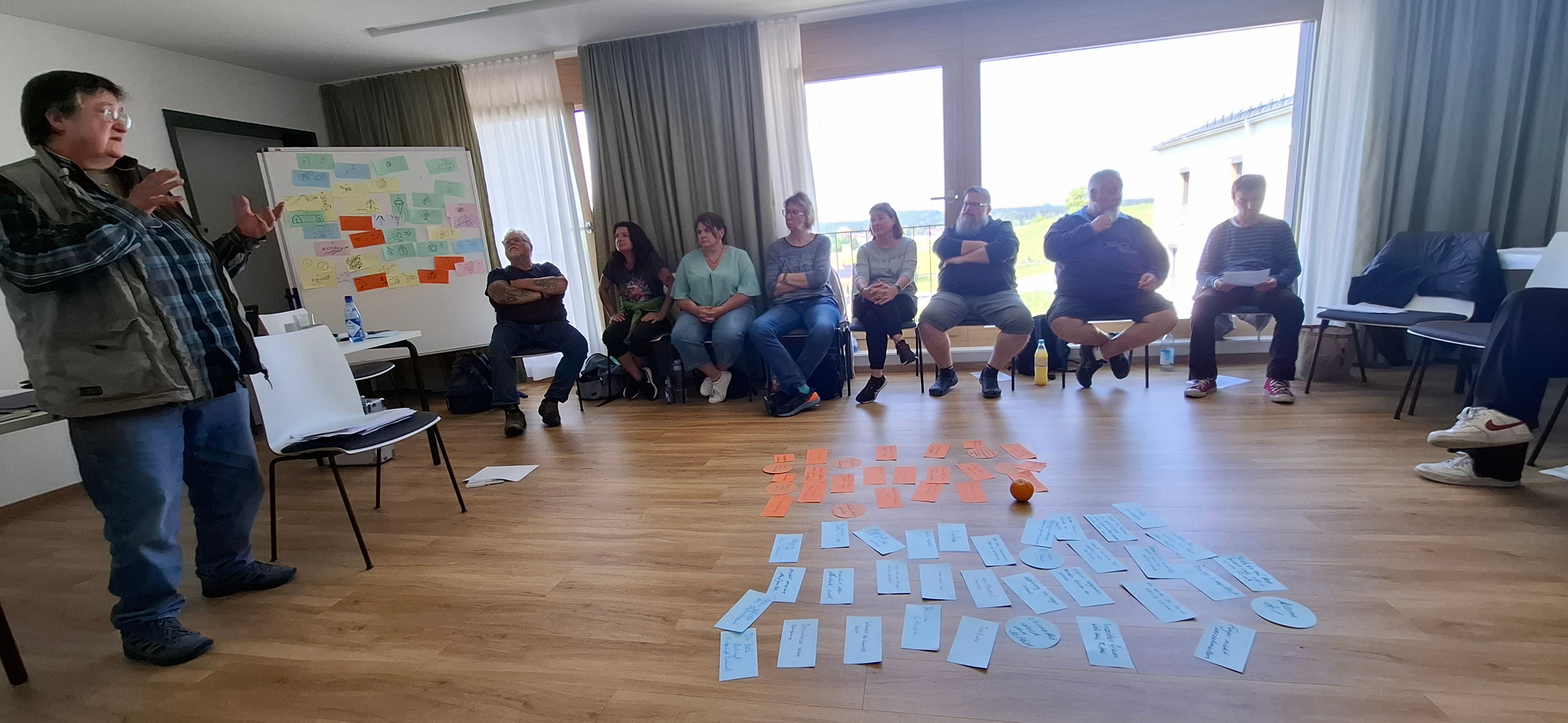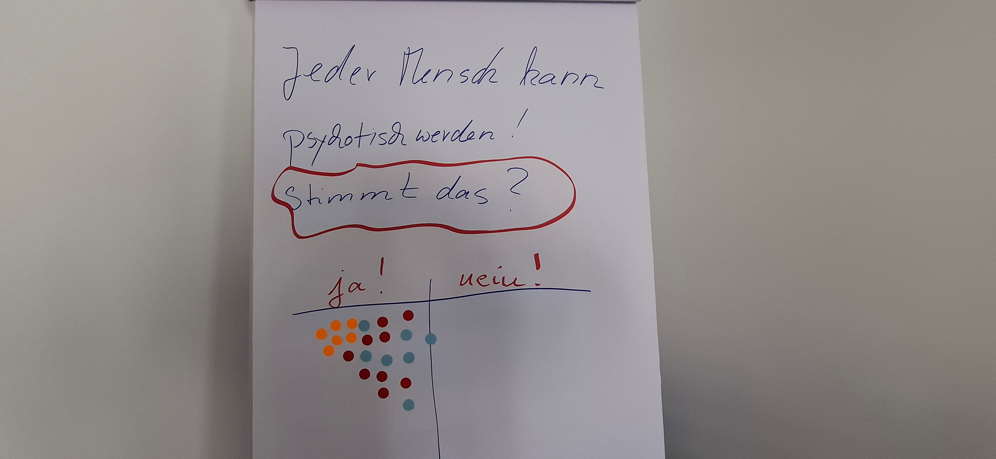 Im Rahmen einer hausinternen Fortbildung wurden wir von Frau Kerstin Riemenschneider auf eine „Wahn - Sinn(s) - Reise“ mitgenommen. Sie gab und die Möglichkeit, mit ihr gemeinsam einen Teil der Wegstrecke ihrer eigen erlebten Psychoseerkrankung zu gehen, Psychose nachzuempfinden und nachzuvollziehen, um dann somit dem Wahn und den betroffenen Personen mit weniger Angst und mehr Verständnis begegnen zu können. Alle beteiligten waren sich einig, es waren bereichernde zwei Tage, wir bedanken uns bei Frau Riemenschneider.