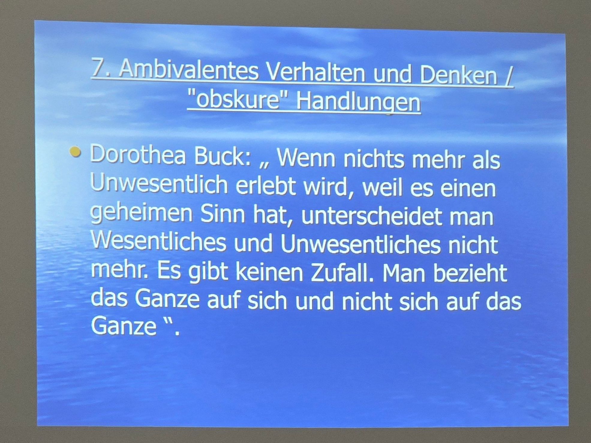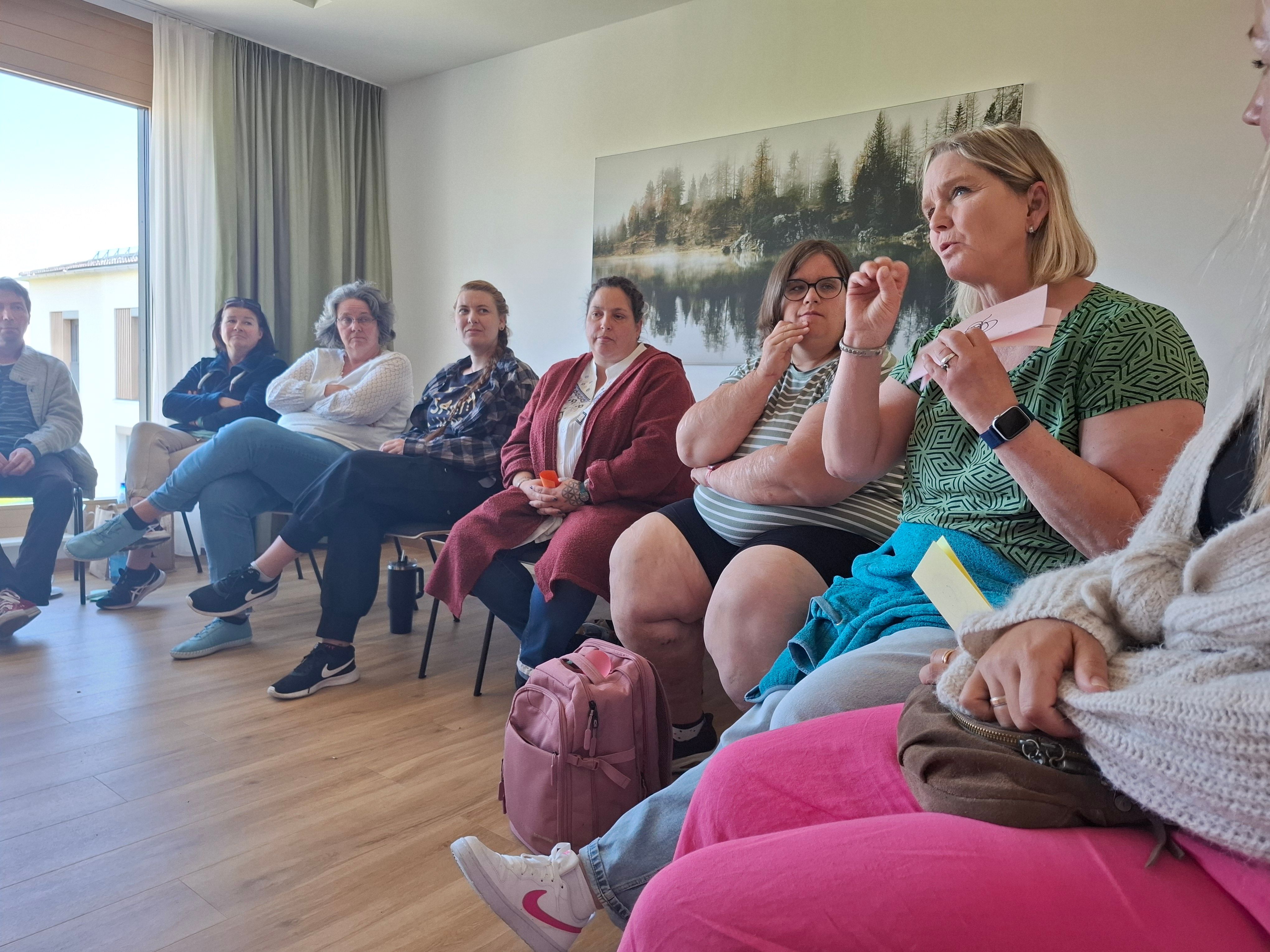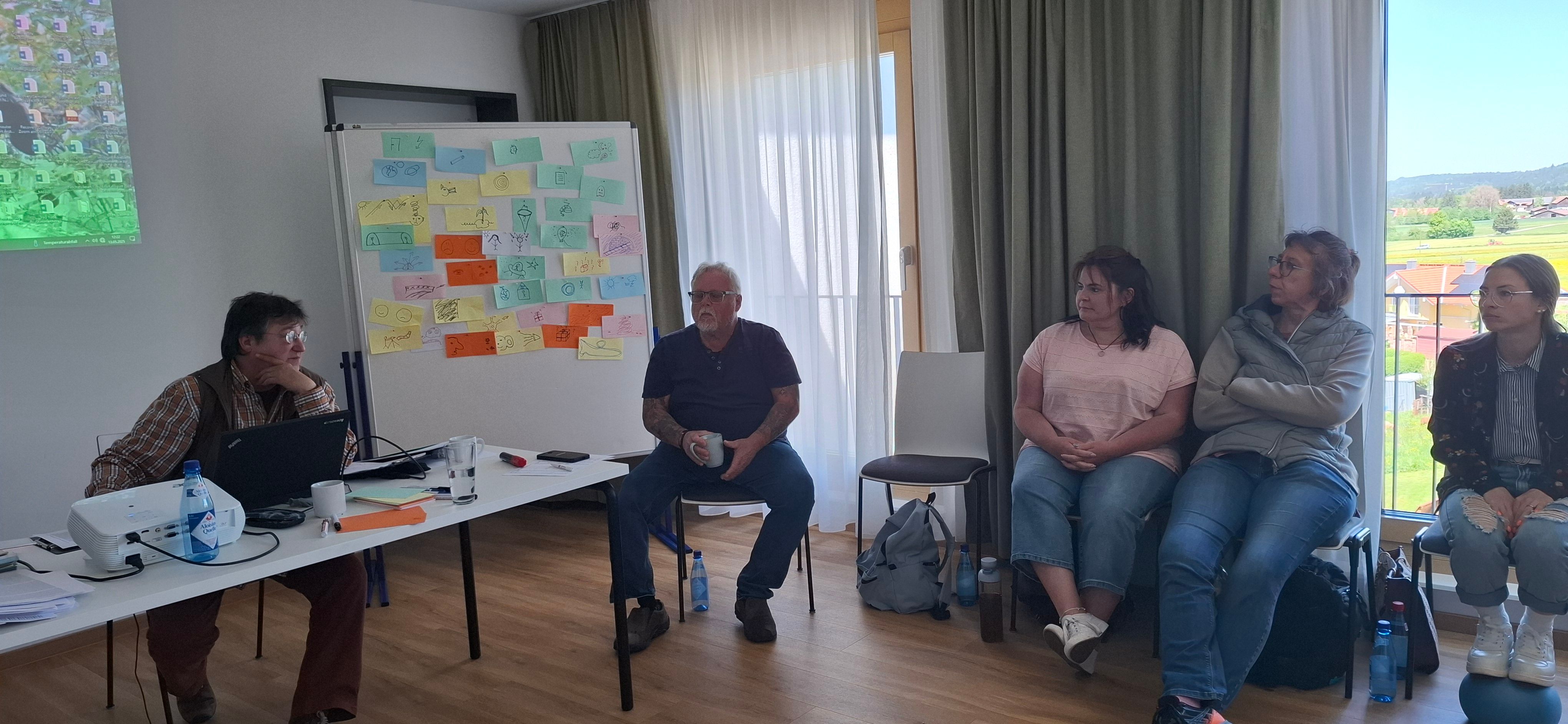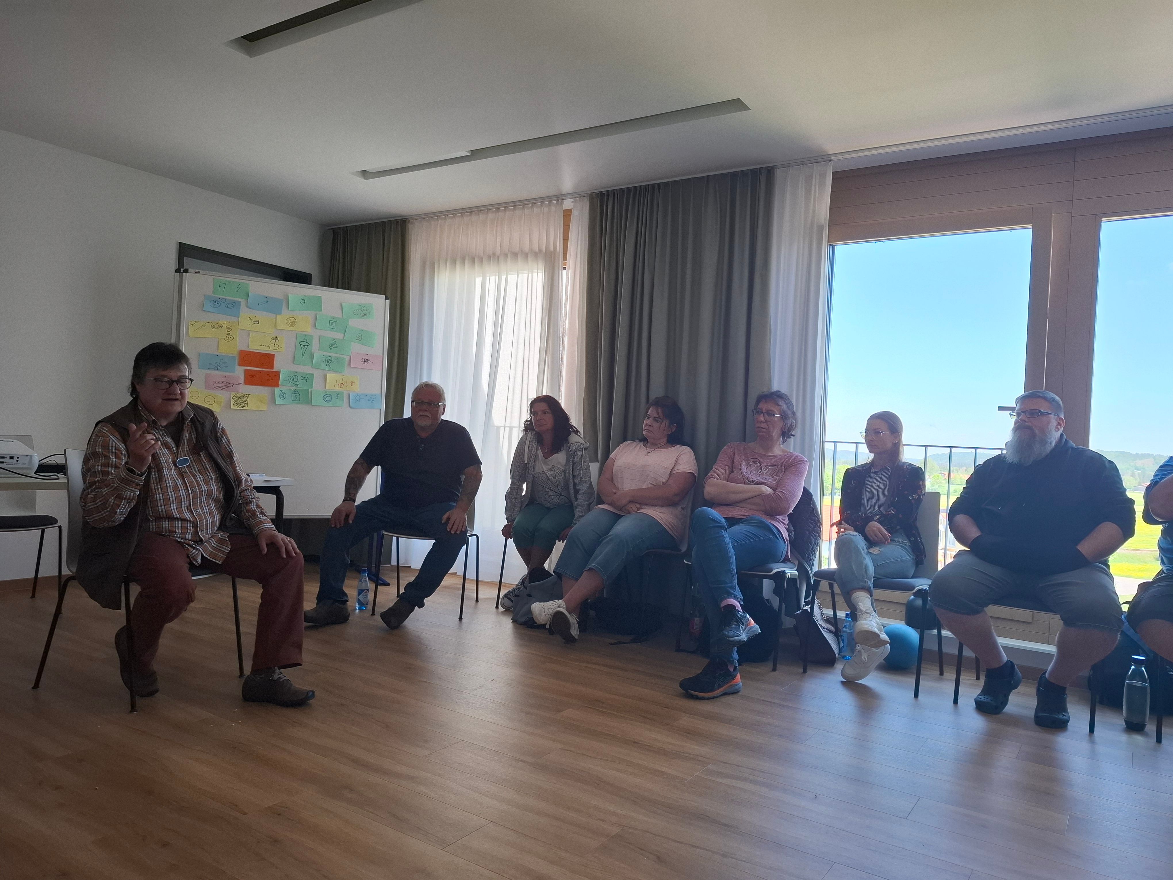 Im Rahmen einer hausinternen Fortbildung wurden wir von Frau Kerstin Riemenschneider auf eine „Wahn - Sinn(s) - Reise“ mitgenommen. Sie gab und die Möglichkeit, mit ihr gemeinsam einen Teil der Wegstrecke ihrer eigen erlebten Psychoseerkrankung zu gehen, Psychose nachzuempfinden und nachzuvollziehen, um dann somit dem Wahn und den betroffenen Personen mit weniger Angst und mehr Verständnis begegnen zu können. Alle beteiligten waren sich einig, es waren bereichernde zwei Tage, wir bedanken uns bei Frau Riemenschneider.